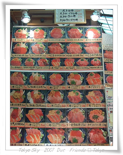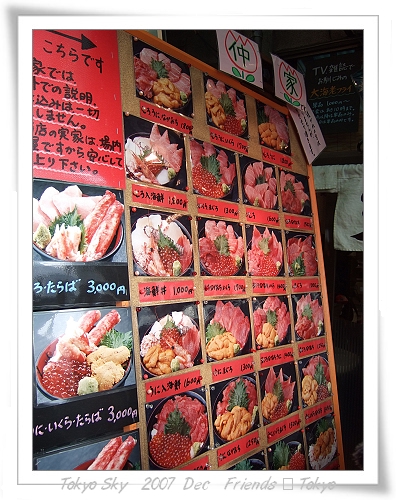 出門前當然找了很多網路上大手們的食記,大和人太多、壽司店超過朋友預算,所以不貴又相對的人少的海鮮丼店家,就成了我們主要的目標。