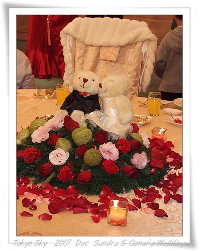 S與O的婚禮桌數較多,氣氛也更為熱鬧溫馨。她們特別請了活潑的同學擔任主持人,緊張中不失淘氣、正經中不忘搞笑的態度讓整體氣氛很高昂。串場活動中與賓客的問答互動和秘密安排"整新人"的橋段都很有趣,不知道其他人怎麼覺得,同學桌的我們都很HIGH呢!新郎新娘親吻(自助式)轉圈圈的場面我大概一輩子都不會忘的。