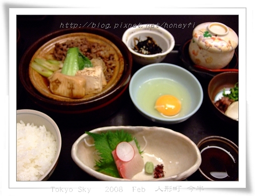 我點的是今半御膳 / 今半御膳(日幣2520),有壽喜燒、生魚片、茶碗蒸,和白飯配菜甜點。
