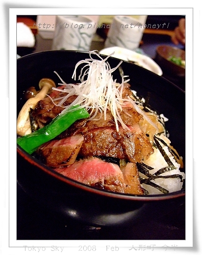 名物ステーキ丼 / 牛排丼(日幣2415),和牛的牛排肉淋上特調醬汁製成。