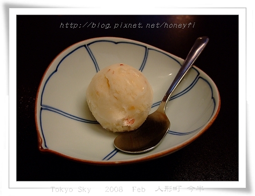 我的今半御膳有附贈甜點,今天是蘋果口味的冰沙一球。味道像極了蘋果多多,不過我實在不愛吃冰,加上又是冬天,所以這一球是三個人分著吃完的。
