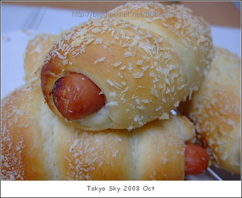 不過還好熱狗卷烤得蠻漂亮的,雖然熱狗本身我不是很喜歡,但是也還可以接受。唯一有個問題是,鮮奶高鈣土司這個配方雖然可以當作甜麵團使用,但是配在這個熱狗卷上的時候,會覺得麵包太鬆太軟,還是要蛋奶含量再高一點的麵體、結實一點的麵體比較適合的感覺。