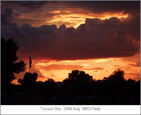 這天的夕陽很美的!土桑的傍晚只要天邊有雲層就會讓夕陽變得很多采多姿,隨著太陽一點點往下降,天空中的色彩和光線也會跟著變化出各式各樣不同的姿色。可惜小豬想到的時候已經有點晚了,從Party的地方要走到好照的角度有一段距離,短腿小豬竟比不上太陽落下的速度,所以沒照到更漂亮的照片。