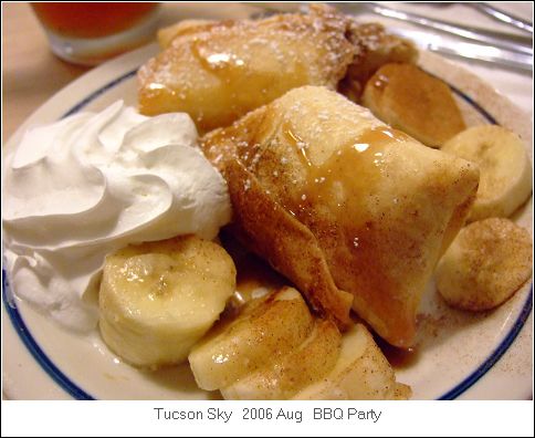 美國的烤肉跟台灣不一樣,吃得是漢堡熱狗、烤得也是漢堡肉和熱狗,沒像台灣雞豬魚玉米蔬菜樣樣來,這時候就有點懷念在台灣烤肉節時吃到的美味了~呵呵。因為沒有吃很多東西,所以散場後就約了另外一攤,到IHOP去吃宵夜去。