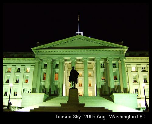 剛到華盛頓DC的第一天下午,我們在旅館稍事休息之後就搭地鐵到白宮附近探險。吃了令人失望的夜景餐廳,飯後則在白宮、華盛頓紀念碑附近瞎晃。夜晚的華盛頓DC讓人映像比較好,微風輕撫、神清氣爽,看不到路上的垃圾也見不著遠處施工的起重機,一座座打上燈光的建築物看起來都是莊嚴而輝煌。