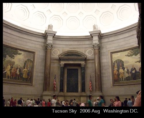 除了假日要排隊排很久、遊客多到爆之外,這裡其實還蠻有趣的,對於美國歷史有點了解的話,會更有感覺。即使不是很懂,看看已經幾乎泛白到看不見的獨立宣言正本,好像也挺有感覺的...呵呵!本來想放一張照下來的獨立宣言,不過實在是一片慘白,應該沒有什麼人對於一張幾近白紙的照片有興趣,所以還是算了。XD